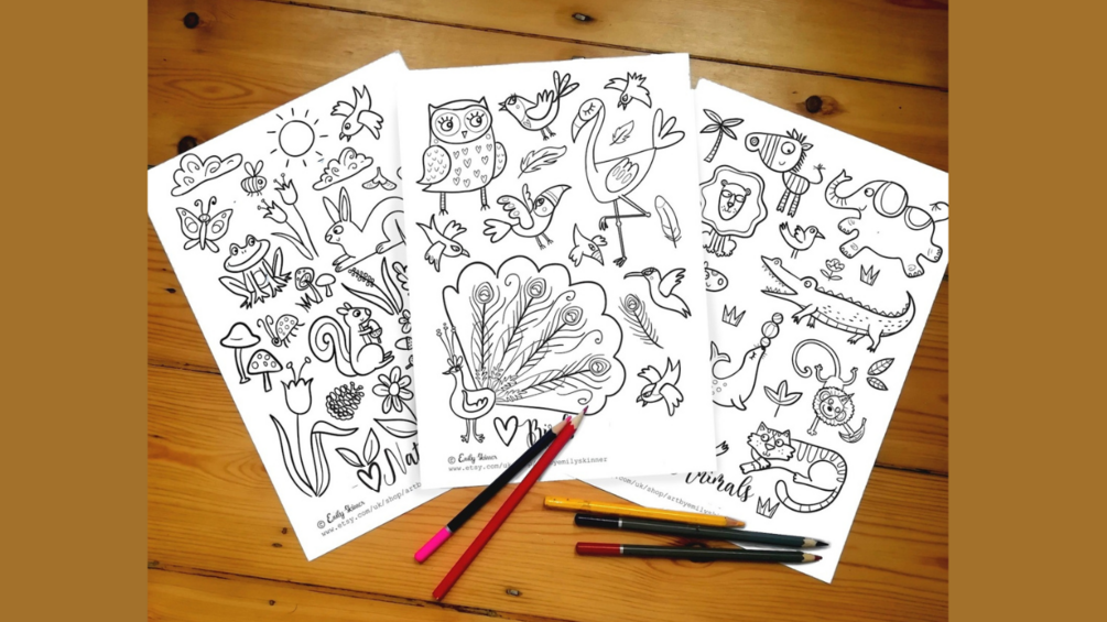 5 x colouring sheets- Animals, Birds, Nature, Spring and Summer themed.